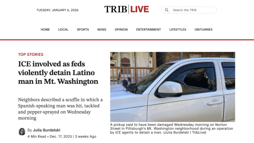TribLive: ICE involved as feds violently detain Latino man in Mt. Washington