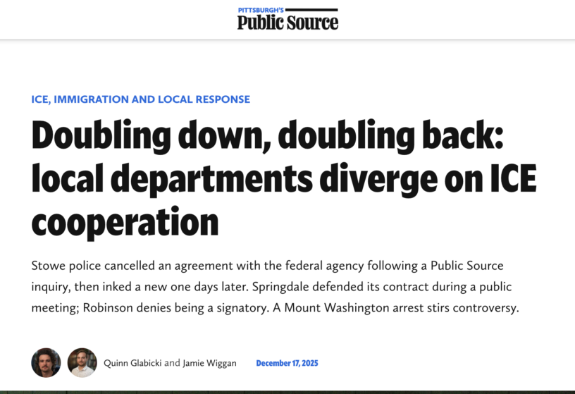 PGH Public Source: Doubling down, doubling back: local departments diverge on ICE cooperation